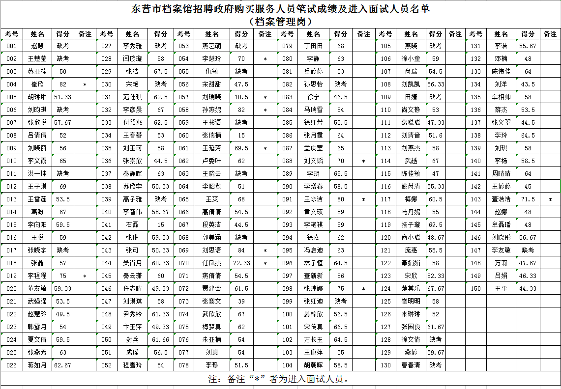 二、按照筆試成績(jī),以1:3的比例確定進(jìn)入面試的人員。筆試缺考人員,成績(jī)?yōu)椤?”。